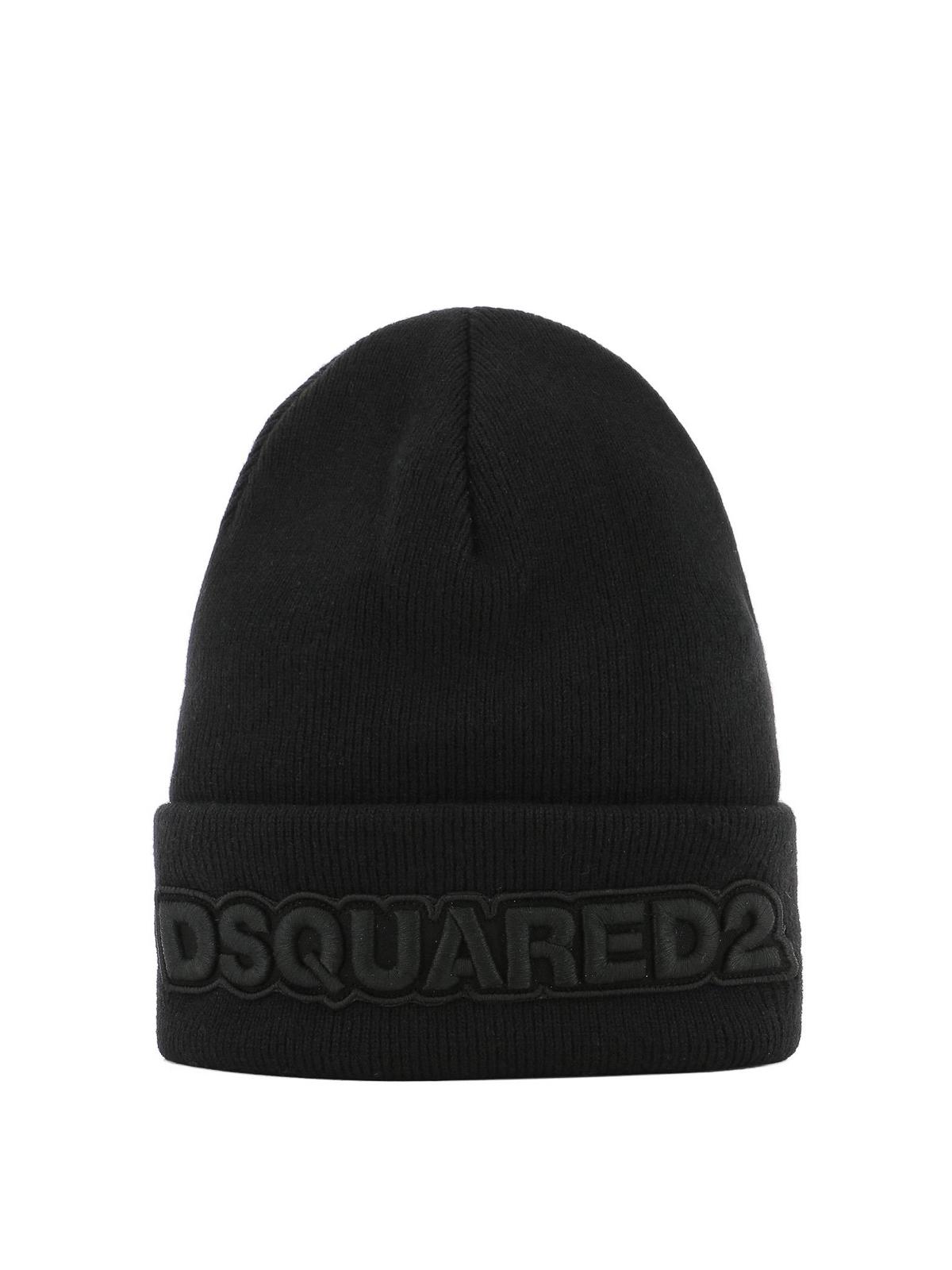 - Dsquared2 black ribbed wool beanie